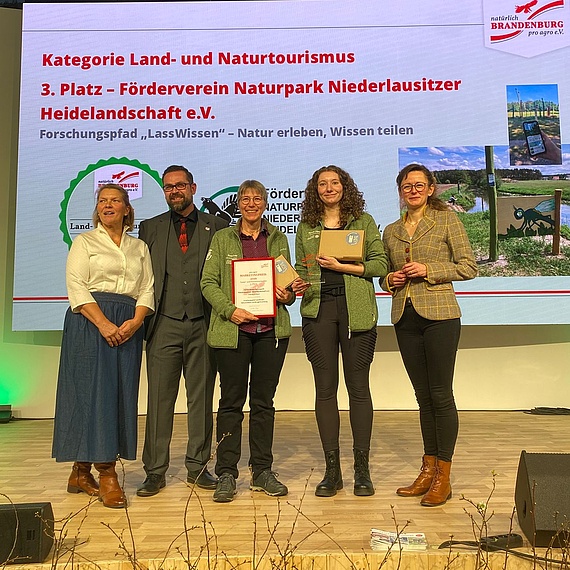 Im Rahmen der Grünen Woche 2026 wurde der Forschungspfad „LassWissen” des Fördervereins Naturpark Niederlausitzer Heidelandschaft e. V. mit dem dritten Platz in der Kategorie „Land- und Naturtourismus” des Marketingpreises des Verbandes pro agro ausgezeichnet. In dieser Kategorie wurden 17 Bewerbungen eingereicht, sodass sich das Projekt gegen eine große Vielfalt an kreativen und nachhaltigen Angeboten durchsetzen konnte. Die Jury wurde vom innovativen Konzept überzeugt, das das wichtige Thema „Verschwinden des Wassers“ als Folge der nachbergbaulichen Landschaftsentwicklung in den Mittelpunkt stellt und nachhaltigen Naturtourismus, interaktive Wissensvermittlung und Familienfreundlichkeit vereint.